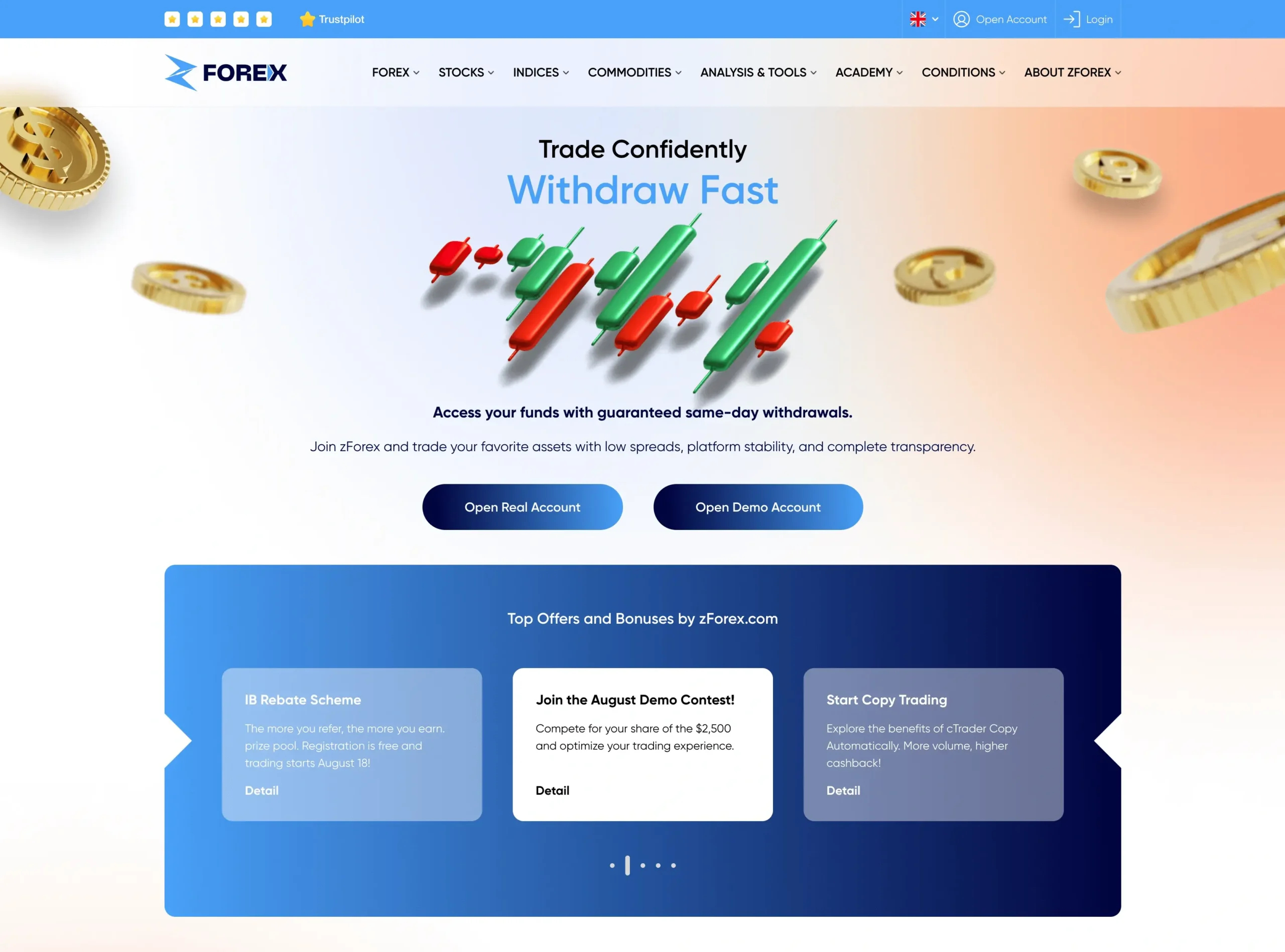 zForex offered three distinct account types to cater to different trading preferences and goals: the Standard Account, the ECN Account, and the Swap-Free Account.